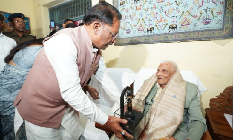 मुख्यमंत्री विष्णुदेव साय ने लोकतंत्र सेनानी डॉ: निर्मल घोष से मुलाकात कर , कुशलक्षेम जाना